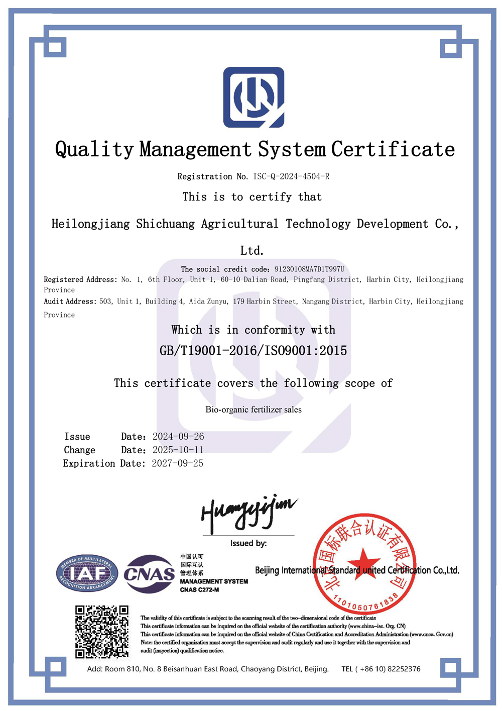 ISC9001证书